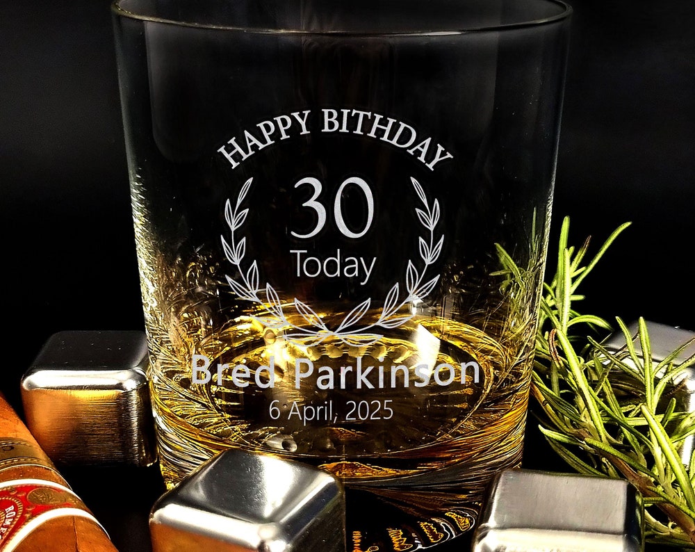 30th Years Birthday Gift for Him Whiskey Glass, Perfect Etched Glass Birthday Gift for Whiskey Lover, Personalized Glass Gift for Men