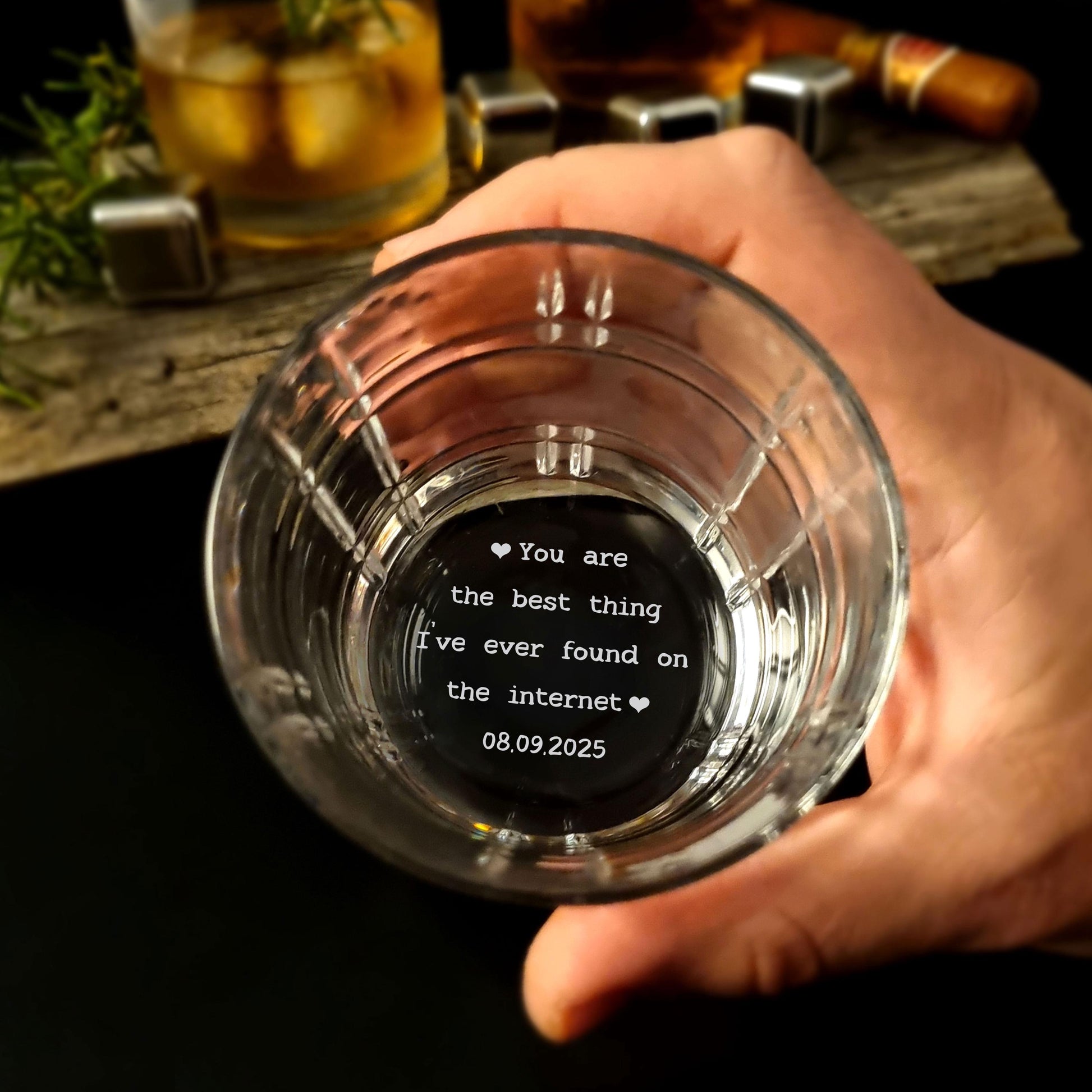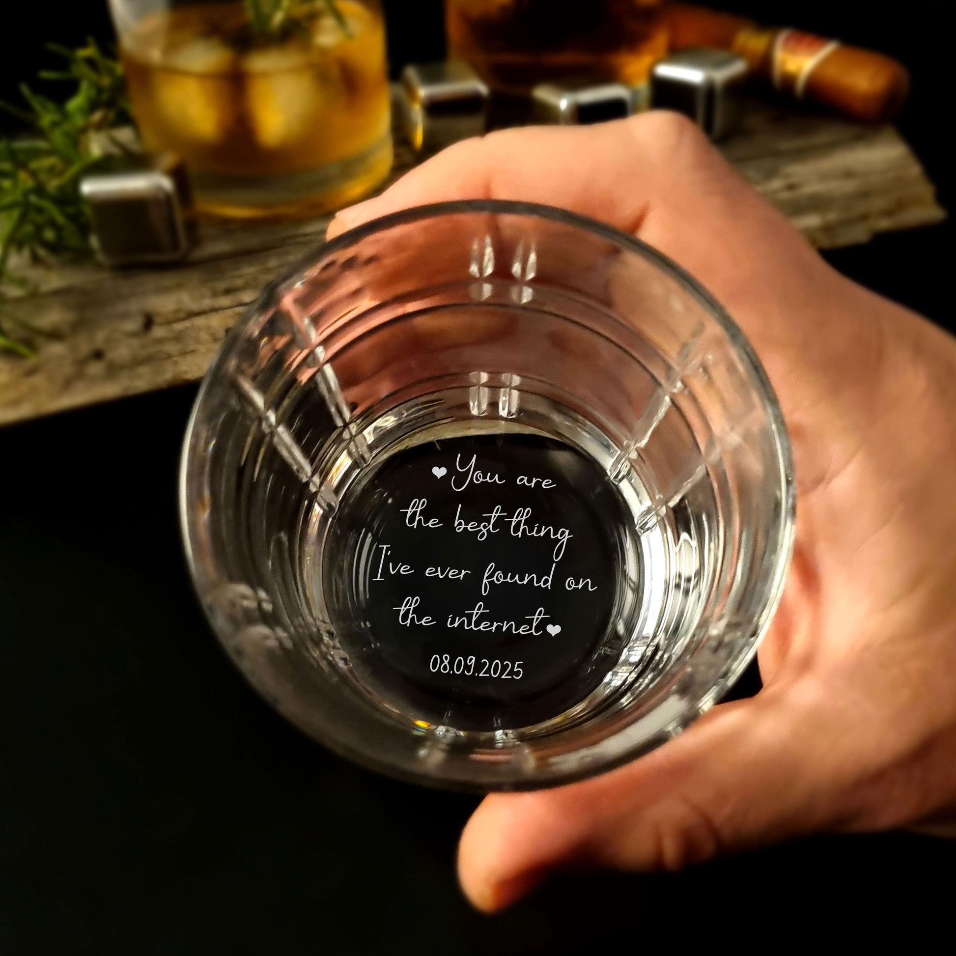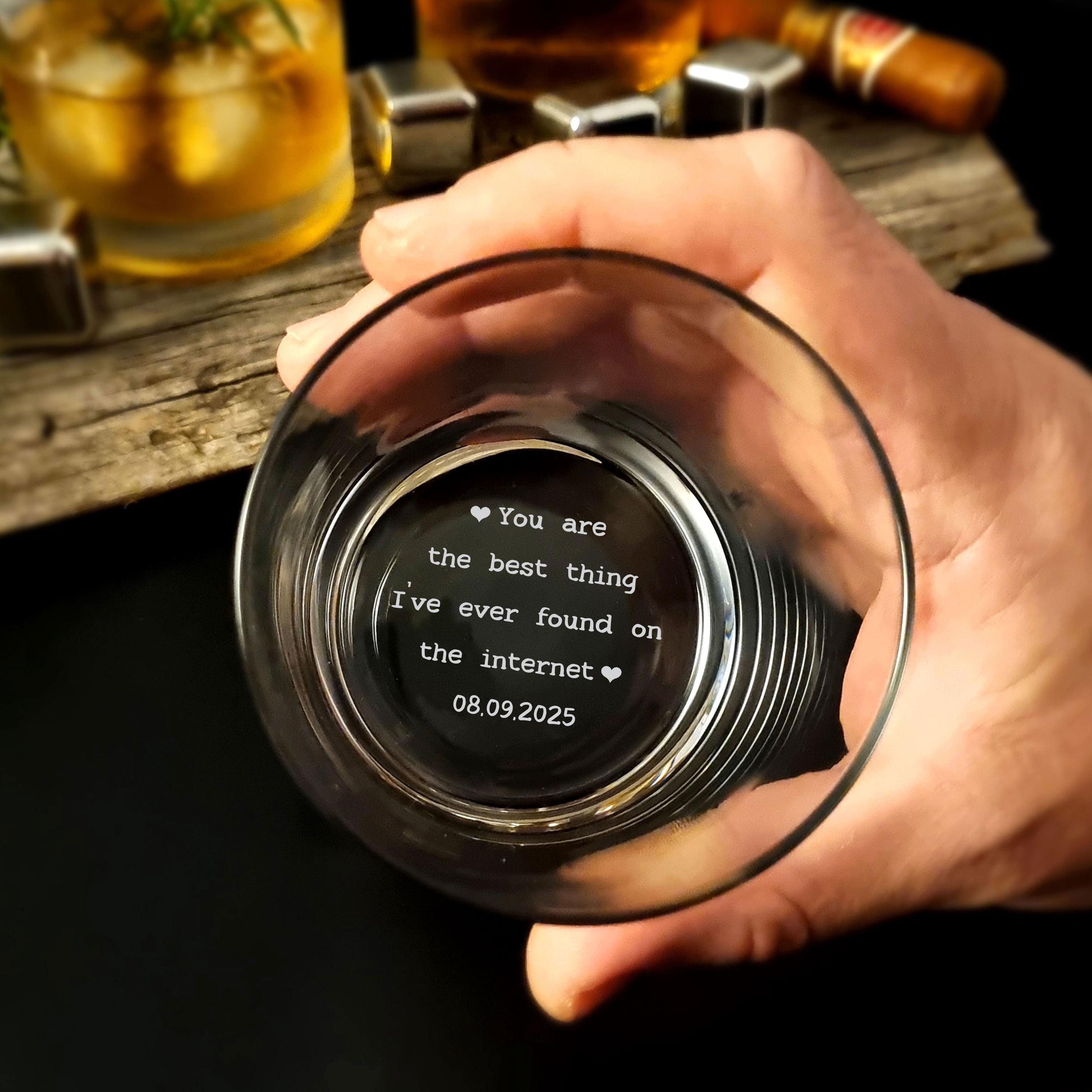 Custom Engraved Whiskey Glass - With Text for Whiskey Lovers - Personalized Glass Gift for Him - Groomsmen Proposal Gift Ideas