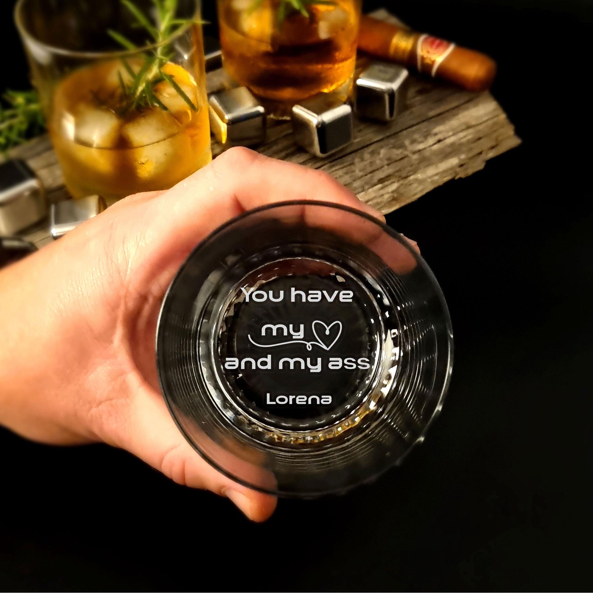 Engraved Whiskey Glass Crystal Whisky Glasses Custom Message Gift You Have My Heart & My Ass Funny Gift for Him Husband Boyfriend