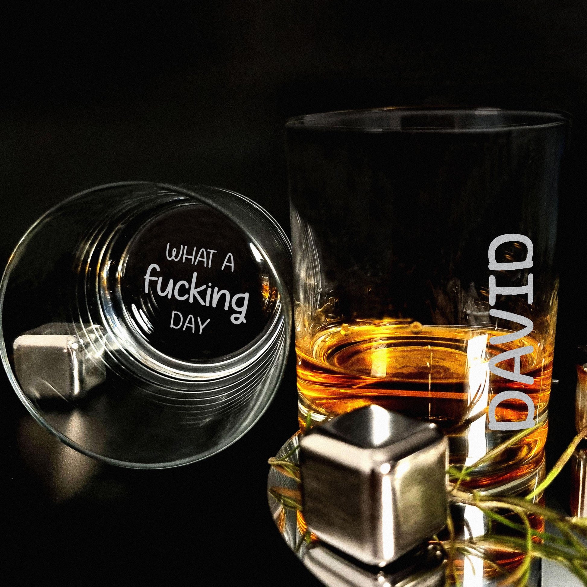 Engraved Whiskey Glass What a Fucking Day Funny Gift for Dad Whiskey Lover Father's Day Birthday and Christmas