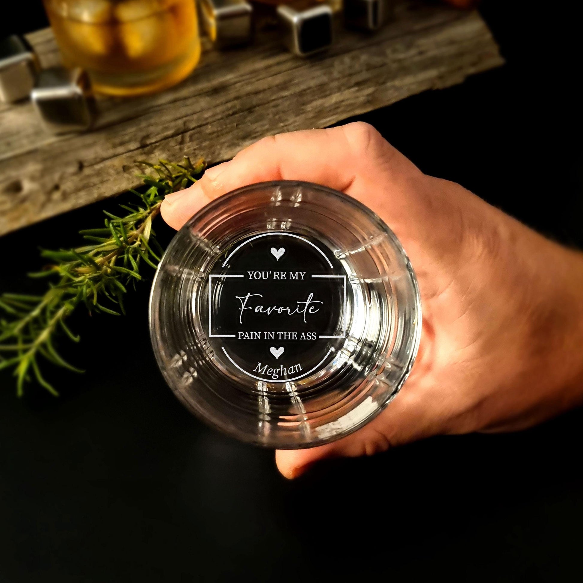 Funny Engraved Whiskey Glass Custom You're My Favorite Pain in The Ass Gift Message for Whiskey Lovers, Bottom Engraved Glasses