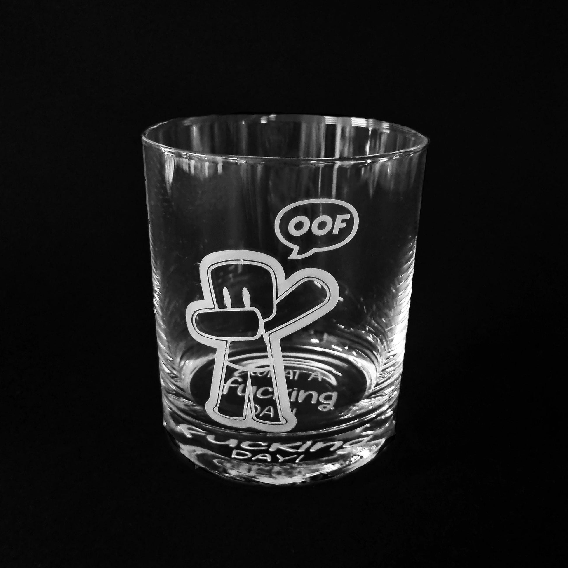 Funny whiskey glass engraved with 'What a Fucking Day'—a bold and humorous gift for Dad, Grandpa, your brother, or any whiskey lover for Father’s Day, Christmas, or birthdays.