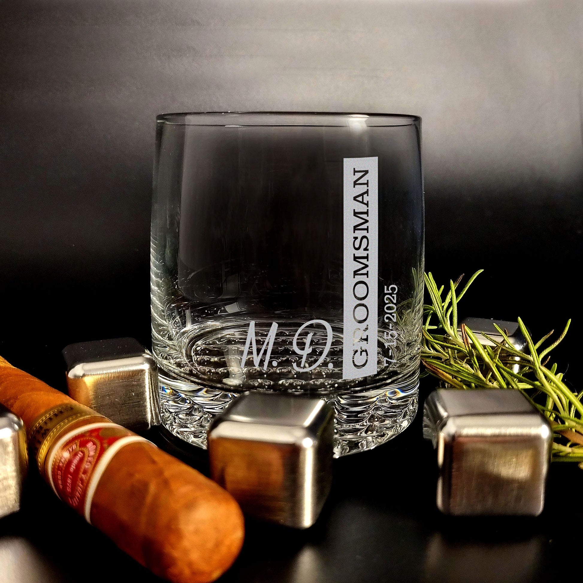 Introducing our Engraved Whiskey Glasses, the perfect personalized gifts for your groomsmen proposals and wedding party favors. These custom whiskey glasses are not only ideal for toasting on your special day but also serve as cherished keepsakes for your best man and groomsmen.