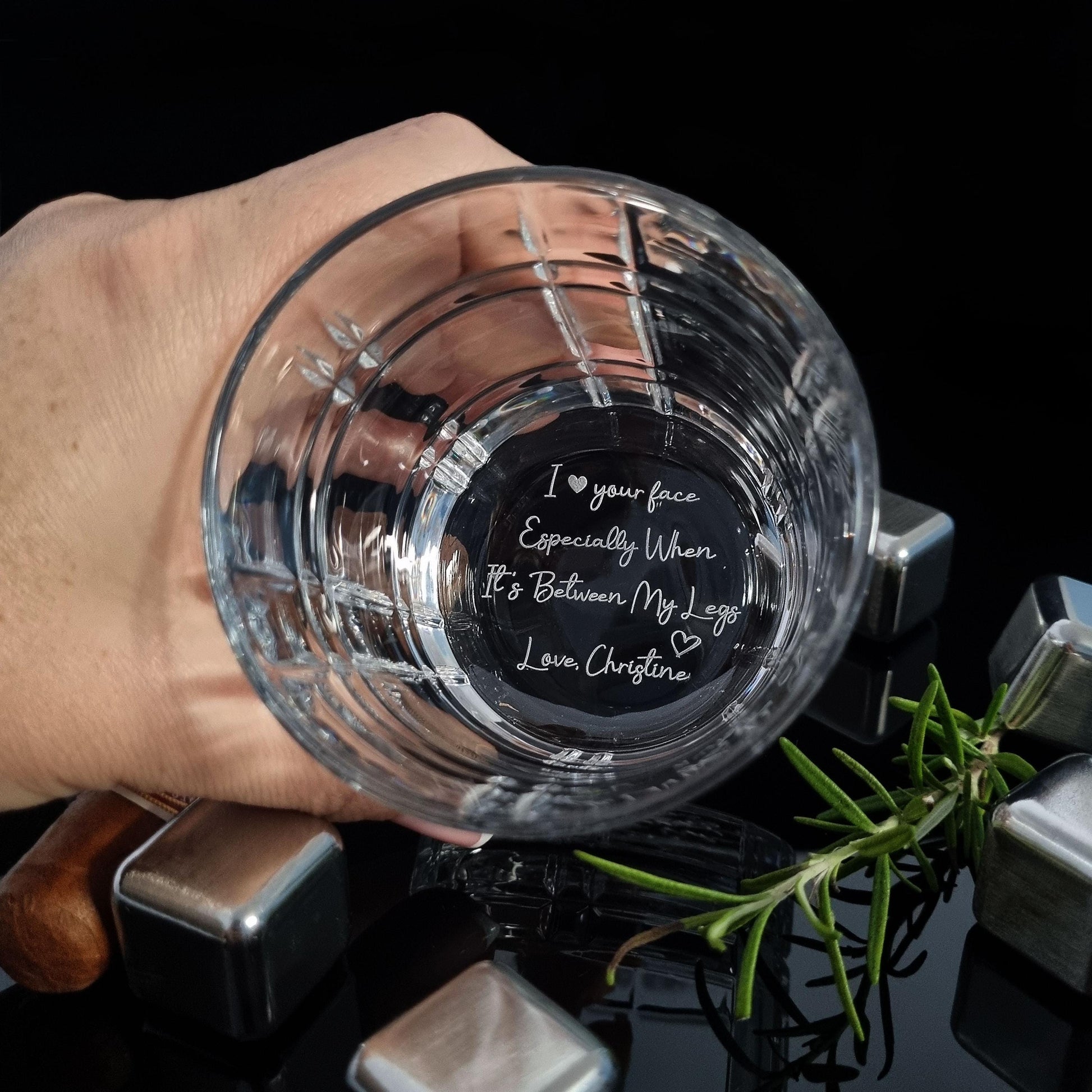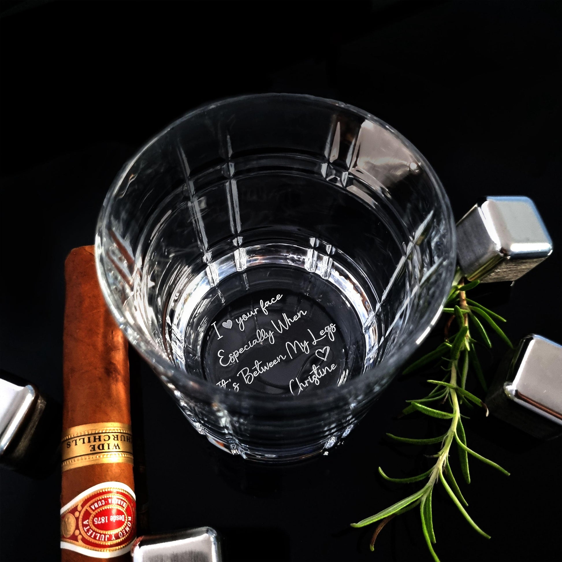 Handwriting Gift Whisky Glass Custom Handwritten Gift Message for Whiskey Lovers, Bottom Engraved Whiskey Glasses
