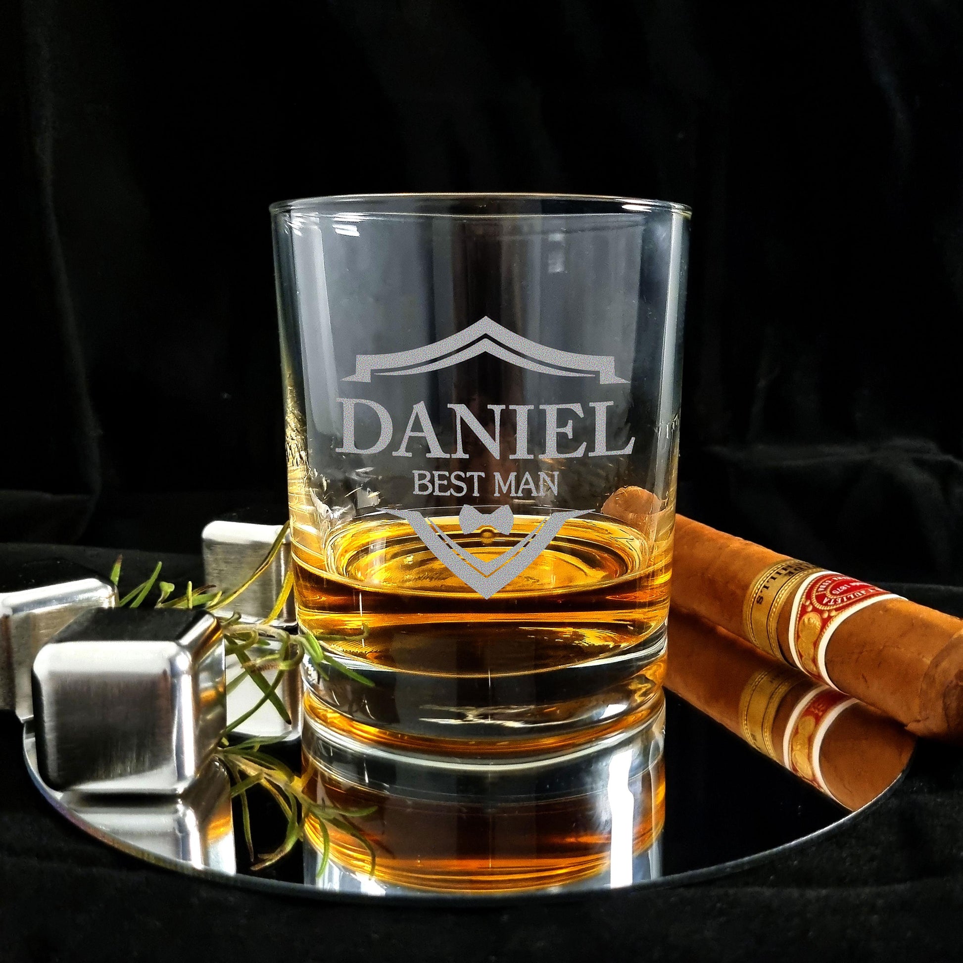 Personalized 11oz engraved groomsman whiskey glass—custom old fashioned glass perfect for best man gifts, groomsmen proposals, and wedding party celebrations.